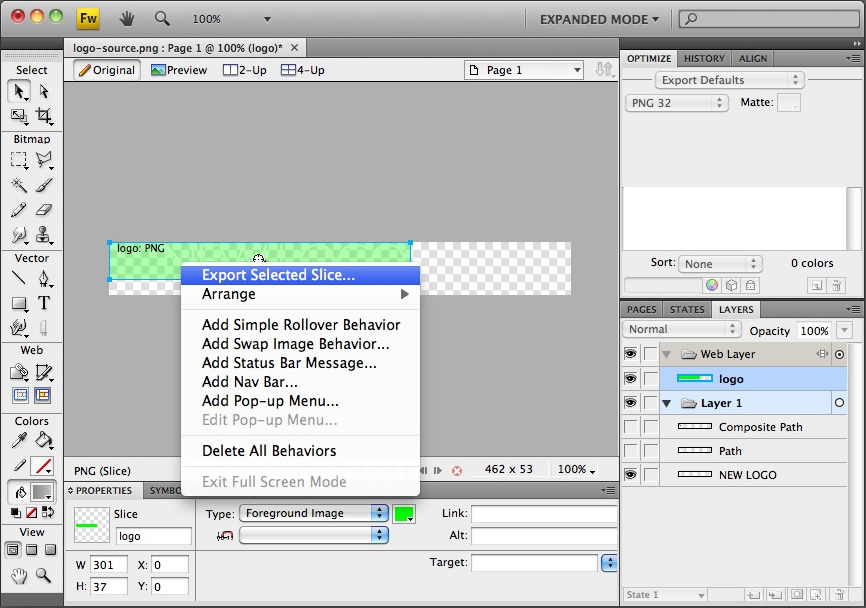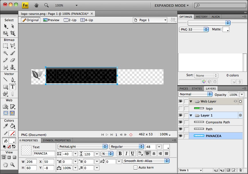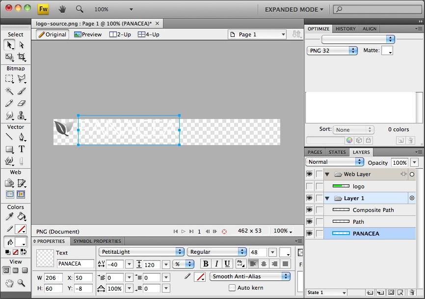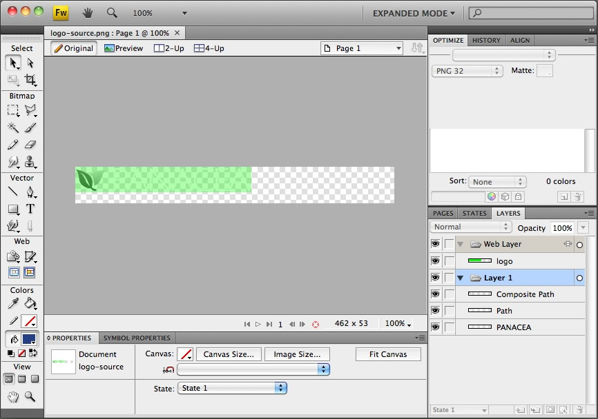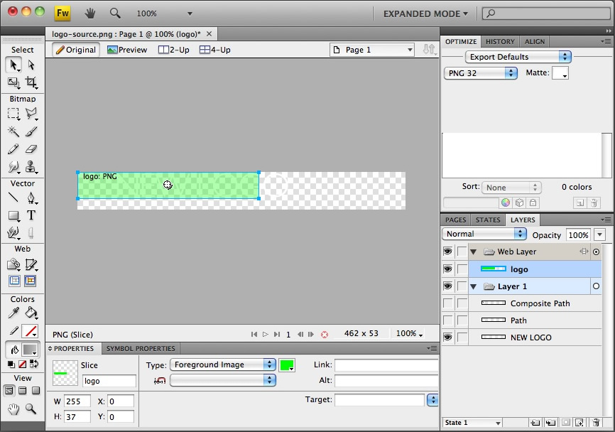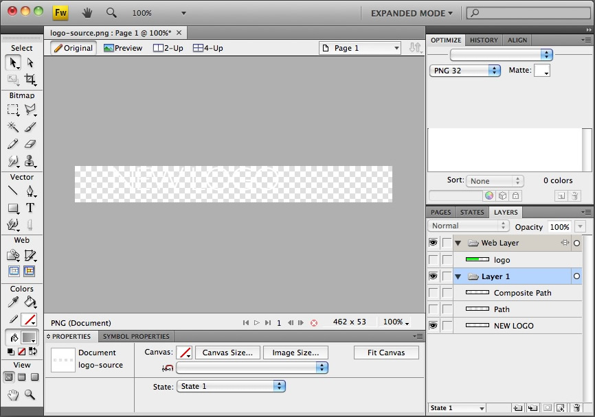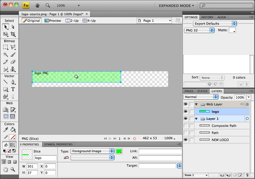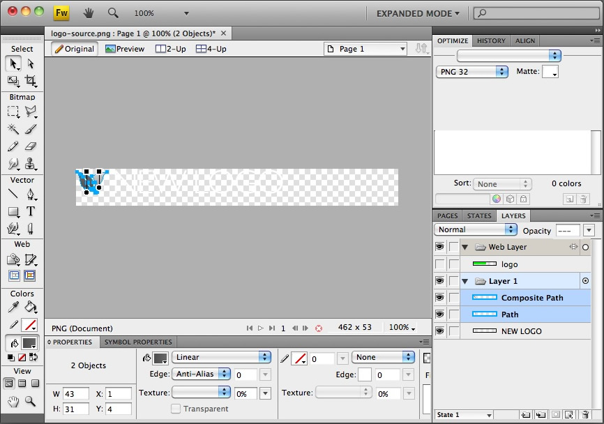 Open the logo-source.png file in Adobe® Fireworks.
